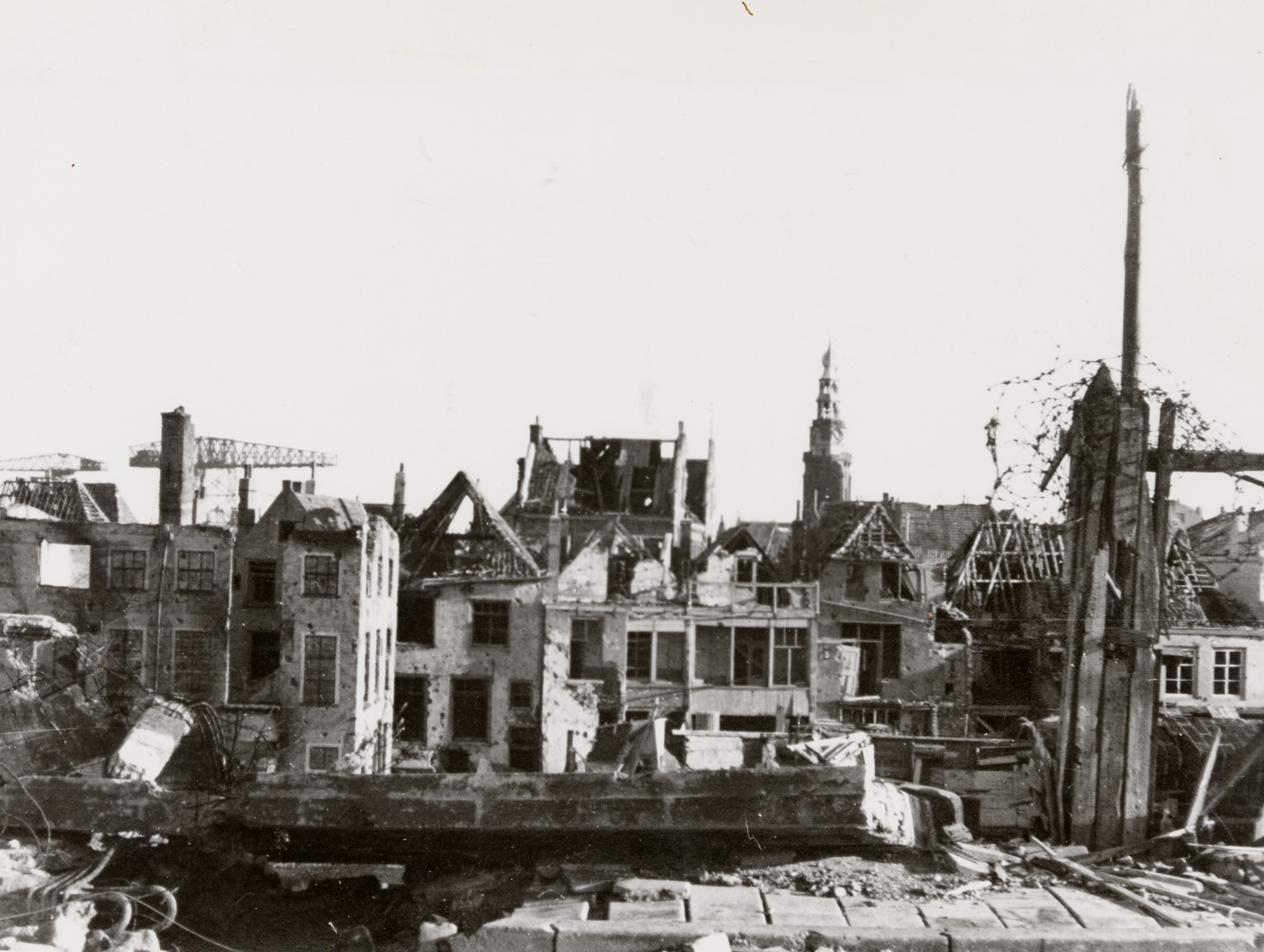 3: Verwoesting in Vlissingen tijdens de Tweede Wereldoorlog. Op de achtergrond zie je nog resten van de Grote Marktschool.