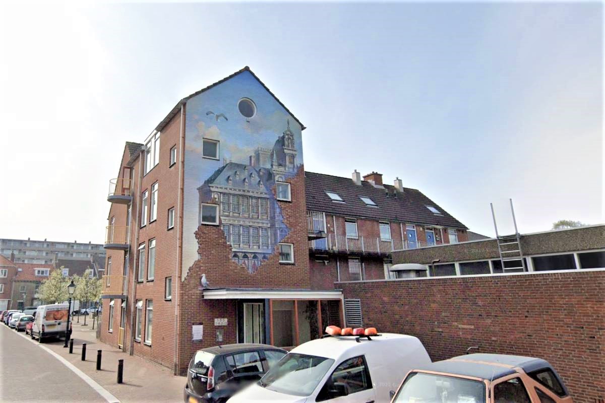 5: Een muurschildering van het oude stadhuis in de buurt