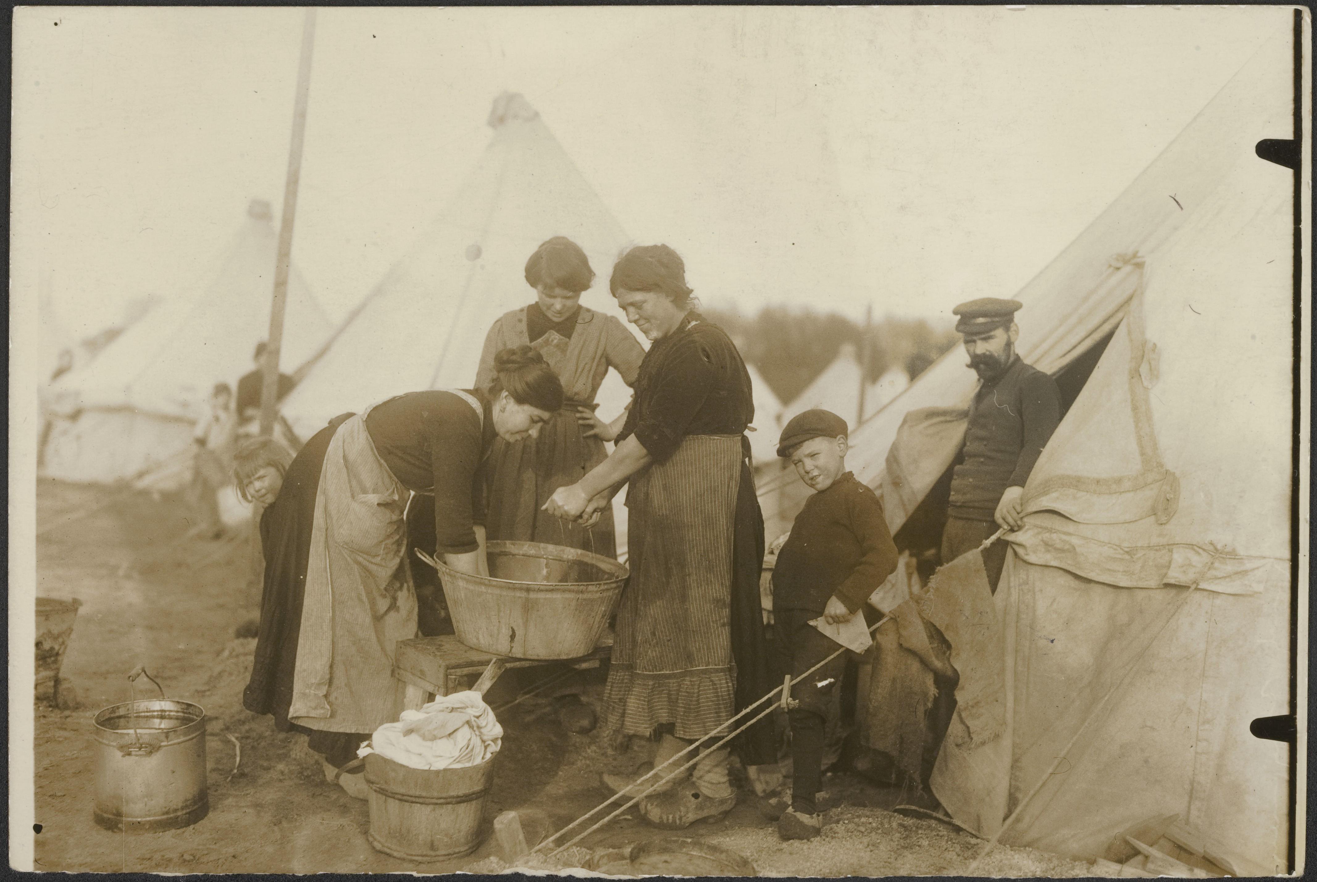 📸6: De was wordt gedaan in een tentenkamp voor Belgische vluchtelingen